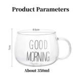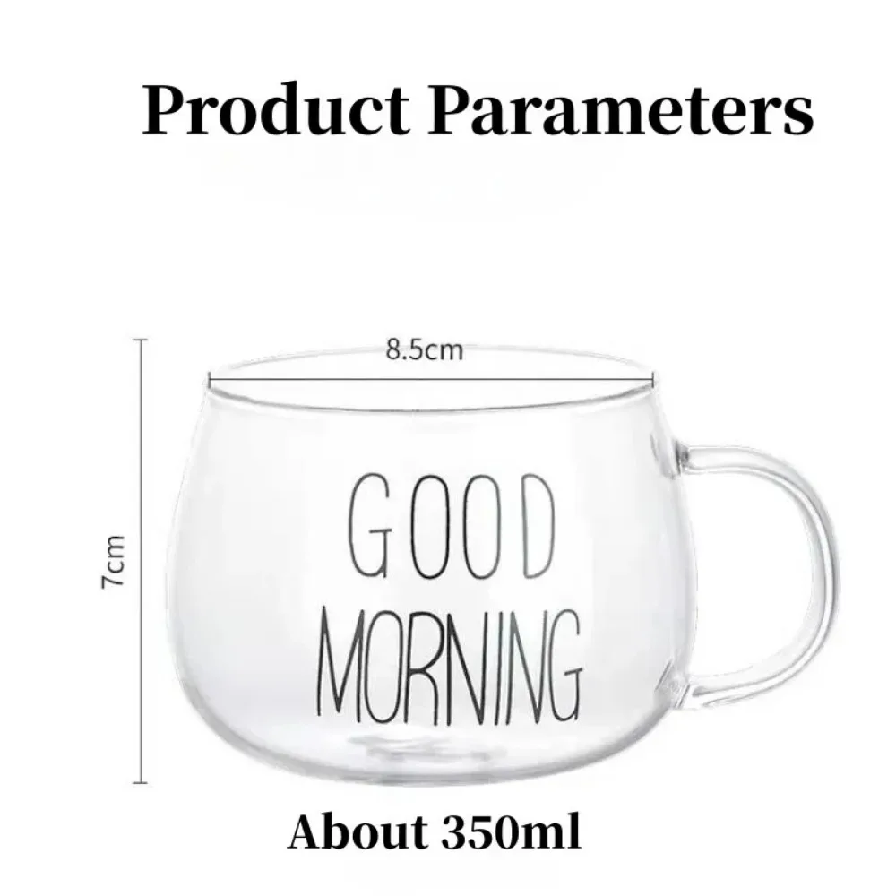 1pc Creative Glass Coffee Tea Cup 350ml Letter Printed Mug Drinks Dessert Breakfast Milk Cup Glass Mugs Handle Drinkware
