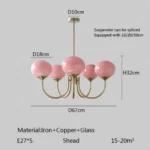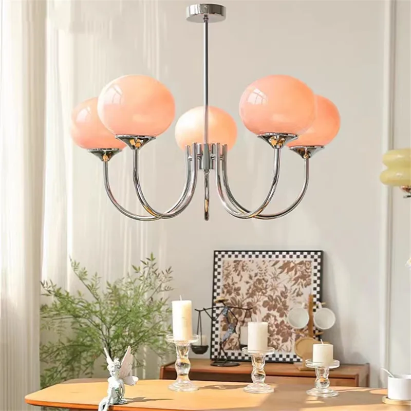 Mid century pink glass chandelier Creative Bauhaus light Arts Lovely Living Room Bedroom Hotel Vintage girl room decor light