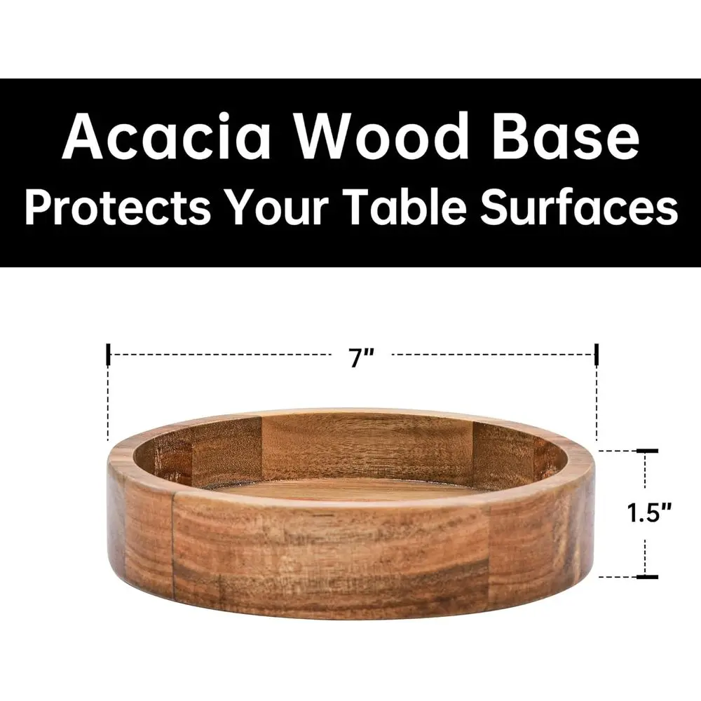 Acacia Wood Base: Provides a sturdy oundation or the large salad serving bowl, protects your table surace rom scratches, and adds a natural rustic charm.